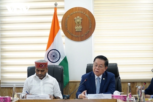 ສະຫາຍ ຫງວຽນຈ້ອງເຫງ້ຍ ຫົວໜ້າຄະນະໂຄສະນາສຶກສາ ແລະຂົນຂວາຍປະຊາຊົນສູນກາງພັກ ເຮັດວຽກກັບທ່ານ Loganathan Murugan ຮອງລັດຖະມົນຕີກະຊວງຖະແຫຼງຂ່າວ ແລະສື່ສານອິນເດຍ. ພາບ: vov.vn |