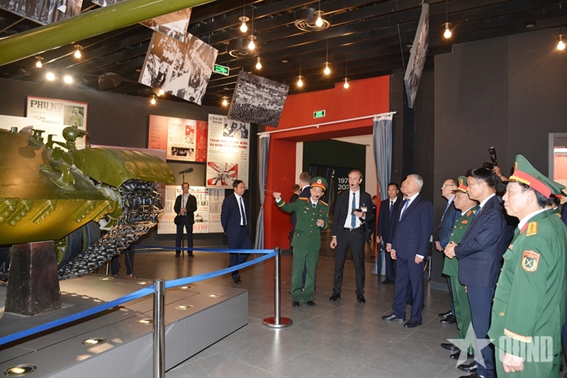 ທ່ານ Vyacheslav Volodin ປະທານດູມາແຫ່ງຊາດ ແລະທ່ານພົນໂທ ເລກວາງມິງ ພ້ອມດ້ວຍຄະນະ ຢ້ຽມຊົມຫໍພິພິທະພັນປະຫວັດສາດການທະຫານຫວຽດນາມ. ພາບ: qdnd.vn |