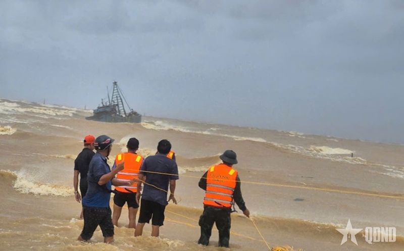 ສະຫາຍ ເລຫງອກກວາງ, ກໍາມະການສູນກາງພັກ, ເລຂາພັກແຂວງກວາງຈີ້ ແລະພັນເອກ ໂງນາມເກື່ອງ, ຮອງຜູ້ບັນຊາການທະຫານເຂດ 4 ໄດ້ລົງຊີ້ນໍາບັນດາກໍາລັງສົມທົບກັບວຽກງານກູ້ຊີບ, ຢ້ຽມຢາມຖາມຂ່າວ ແລະໃຫ້ກໍາລັງໃຈຜູ້ປະສົບໄພ. ມາຮອດເວລາ 12 ໂມງ 30 ນາທີຂອງວັນດຽວກັນ, ບັນດາກໍາລັງ ໄດ້ປະສານສົມທົບຊ່ວຍເຫຼືອລູກເຮືອໄດ້ 9 ຄົນ ແລະນຳຂຶ້ນຝັ່ງເພື່ອກວດສຸຂະພາບ, ພ້ອມທັງສືບຕໍ່ຜັນຂະຫຍາຍການຄົ້ນຫາ, ຊ່ວຍເຫຼືອຜູ້ປະສົບໄພ 2 ຄົນທີ່ຍັງເຫຼືອ ໃນທ່າມກາງຝົນຕົກໜັກ, ລົມແຮງ ແລະ ຄື້ນຟອງສູງ...