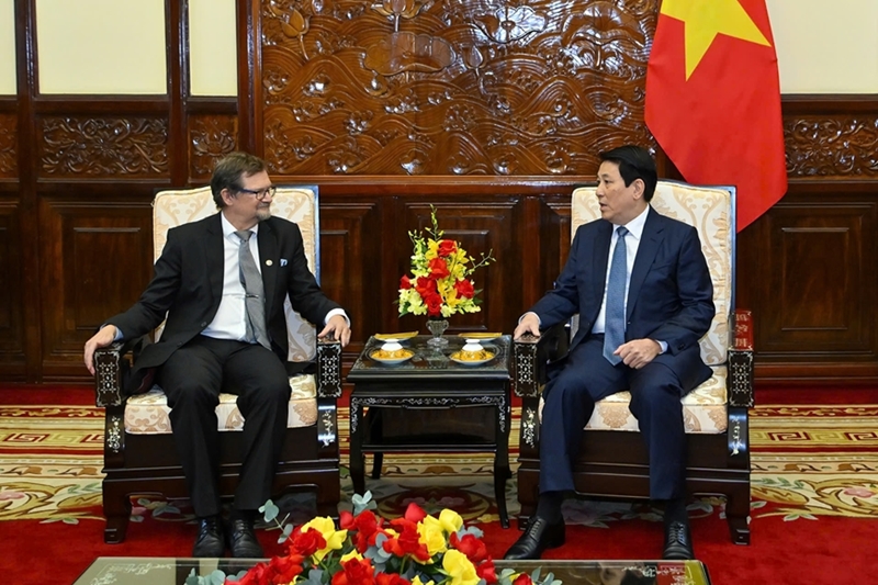 ທ່ານ ເລືອງເກື່ອງ ປະທານປະເທດຫວຽດນາມ ຕ້ອນຮັບທ່ານ Pekka Voutilainen ເອກອັກຄະລັດຖະທູດແຟງລັງ. ພາບ: qdnd.vn |