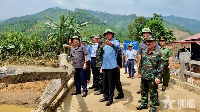 ທ່ານຮອງນາຍົກລັດຖະມົນຕີ ເຈີ່ນຮົ່ງຮ່າ ຢ້ຽມຢາມ, ກວດກາ, ລະດົມກໍາລັງໃຈບັນດາກໍາລັງແກ້ໄຂຜົນຮ້າຍຢ້ອນຫຼັງຈາກພາຍຸ, ນໍ້າຖ້ວມ. ພາບ: qdnd.vn |