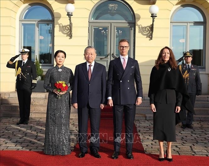 ທ່ານປະທານາທິບໍດີ Alexander Stubb ພ້ອມດ້ວຍພັນລະຍາ ເປັນປະທານພິທີຕ້ອນຮັບທ່ານເລຂາທິການໃຫຍ່ ໂຕເລິມ ພ້ອມດ້ວຍພັນລະຍາ. ພາບ: ສໍານັກຂ່າວສານຫວຽດນາມ |
