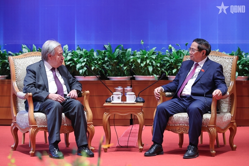 ທ່ານເລຂາທິການໃຫຍ່ Antonio Guterres ຢືນຢັນວ່າ ສປຊ ຈະສືບຕໍ່ຮ່ວມເດີນທາງກັບຫວຽດນາມ ໃນໄລຍະພັດທະນາໃໝ່, ໂດຍສະເພາະແມ່ນການສະໜັບສະໜູນການປະຕິບັດຄຳໝັ້ນສັນຍາກ່ຽວກັບການປ່ຽນແປງຂອງດິນຟ້າອາກາດ, SDGs ແລະການປະຕິຮູບດ້ານການເງິນທົ່ວໂລກ. ທ່ານເລຂາທິການໃຫຍ່ ສປຊ ຢືນຢັນວ່າ ທ່ານ ລໍຄອຍ ແລະເຊື່ອໝັ້ນວ່າ ຫວຽດນາມ ຈະເສີມຂະຫຍາຍບົດບາດ, ທີ່ຕ້ັງ ແລະອິດທິພົນຊື່ສຽງຂອງຕົນ ເພື່ອປະກອບສ່ວນເຂົ້າໃນການກໍ່ສ້າງໂຄງປະກອບການພົວພັນສາກົນແບບໃໝ່. ໃນນ້ັນ, ທ່ານ ເລຂາທິການໃຫຍ່ ໄດ້ຮຽກຮ້ອງໃຫ້ຫວຽດນາມ ສະໜັບສະໜູນຢ່າງຕັ້ງໜ້າຕໍ່ຂໍ້ລິເລີ່ມ ແລະບຸລິມະສິດຂອງສະຫະປະຊາຊາດ ເພື່ອຊຸກຍູ້ກໍາລັງໜູນຜັນຂະຫຍາຍ SDGs ແລະການປະຕິຮູບໂຄງສ້າງການເງິນສາກົນ; ແລະຫວັງວ່າຫວຽດນາມ ຈະມີຄຳໝັ້ນສັນຍາກ່ຽວກັບການປ່ຽນແປງຂອງດິນຟ້າອາກາດທີ່ເຂັ້ມແຂງກວ່າເກົ່າ ພ້ອມທັງເຂົ້າຮ່ວມໃນຄວາມພະຍາຍາມຂອງສະຫະປະຊາຊາດກ່ຽວກັບການທູດສະກັດກັ້ນ, ການໄກ່ເກ່ຍ ແລະສະກັດກັ້ນການປະທະກັນ.