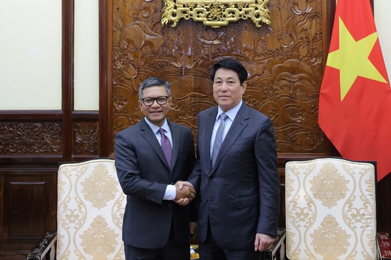 *ທີ່ການຕ້ອນຮັບທ່ານ Denny Abdi ເອກອັກຄະລັດຖະທູດອິນໂດເນເຊຍ, ທ່ານປະທານປະເທດ ໄດ້ຊົມເຊີຍທ່ານເອກອັກຄະລັດຖະທູດ ສຳເລັດອາຍຸການປະຕິບັດງານຢູ່ຫວຽດນາມ ຢ່າງດີເລີດ ແລະມີການປະກອບສ່ວນອັນຕັ້ງໜ້າຫຼາຍຢ່າງເຂົ້າໃນການຊຸກຍູ້ການພັດທະນາການພົວພັນລະຫວ່າງສອງປະເທດ.