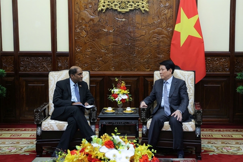 *ຊົມເຊີຍທ່ານ Jaya Ratnam ເອກອັກຄະລັດຖະທູດສິງກະໂປ ທີ່ສຳເລັດອາຍຸການປະຕິບັດງານຢູ່ຫວຽດນາມ ຢ່າງດີເລີດ, ທ່ານປະທານປະເທດ ໄດ້ຕີລາຄາສູງຕໍ່ການປະກອບສ່ວນອັນສຳຄັນຂອງທ່ານເອກອັກຄະລັດຖະທູດ ໃນການຊຸກຍູ້ການພັດທະນາການພົວພັນສອງຝ່າຍ.