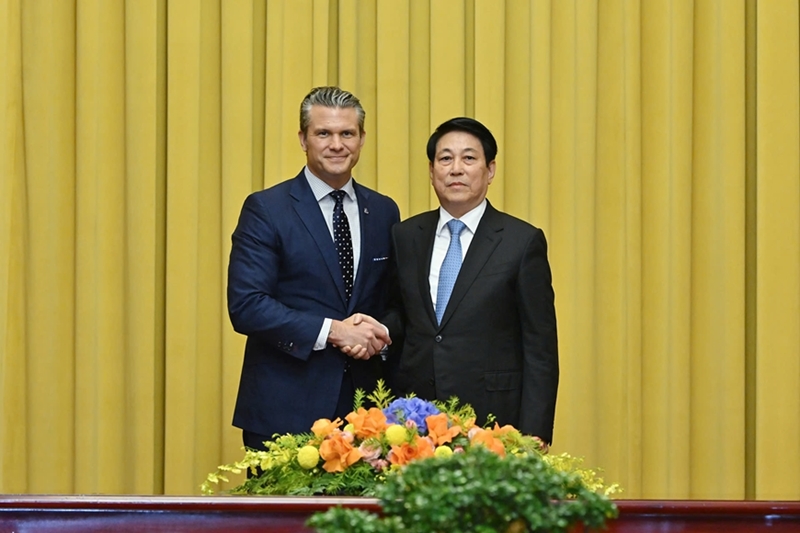 ທ່ານ ເລືອງເກື່ອງ ປະທານປະເທດຫວຽດນາມ ແລະທ່ານ Pete Hegseth ລັດຖະມົນຕີກະຊວງສົງຄາມອາເມລິກາ. ພາບ: ສໍານັກຂ່າວສານຫວຽດນາມ |