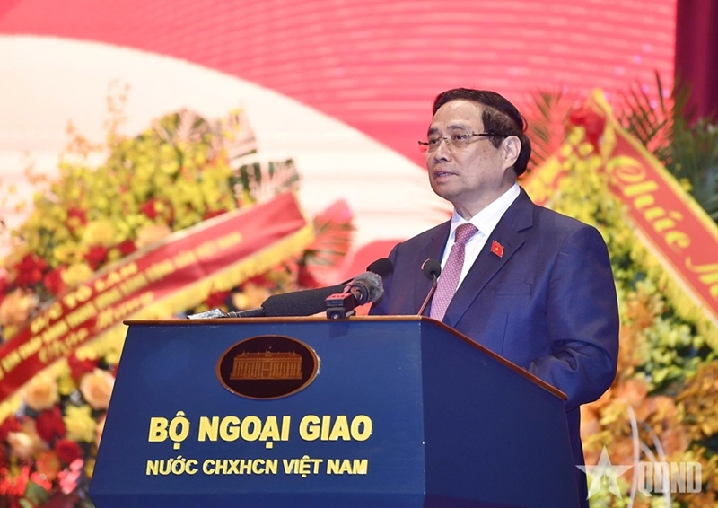 ທ່ານ ຟ້າມມິງຈິ໊ງ ນາຍົກລັດຖະມົນຕີ ກ່າວຄຳເຫັນຊີ້ນຳກອງປະຊຸມໃຫຍ່ແຂ່ງຂັນຮັກຊາດ ກະຊວງການຕ່າງປະເທດ ໄລຍະ 2025-2030. ພາບ: qdnd.vn |