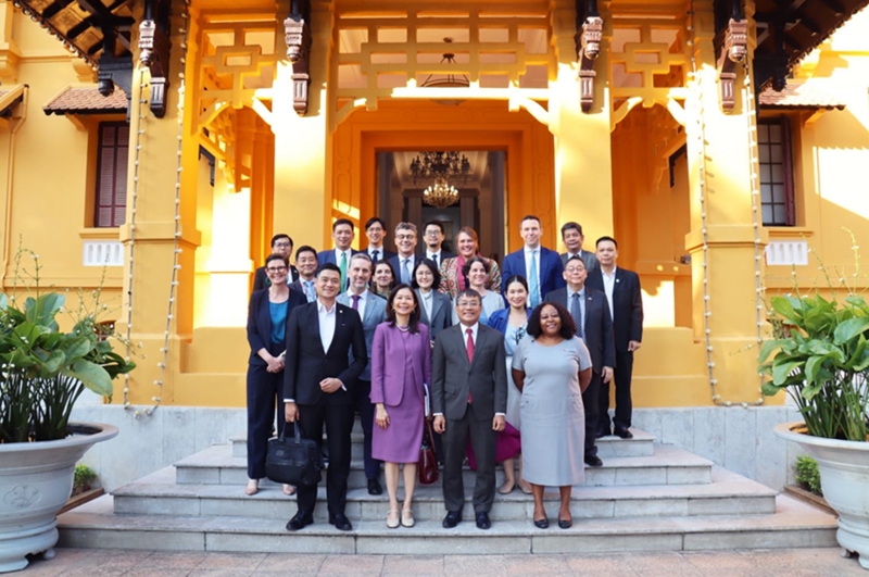 ທີ່ການເຮັດວຽກ, ທ່ານ ຫງວຽນມິງຫວູ ໄດ້ແບ່ງປັນຜົນງານທີ່ພົ້ນເດັ່ນຂອງການພັດທະນາເສດຖະກິດ-ສັງຄົມ ທີ່ຫວຽດນາມບັນລຸໄດ້ໃນໄລຍະຜ່ານມາ ແລະບັນດາເປົ້າໝາຍການພັດທະນາຍຸດທະສາດໃນໄລຍະຈະມາເຖິງ, ຢືນຢັນວ່າ ບັນດາໝາກຜົນທີ່ບັນລຸໄດ້ຍ້ອນຄວາມຕັດສິນໃຈຂອງພັກ ແລະລັດ, ພ້ອມກັບຄວາມຕັດສິນໃຈປະຕິຮູບທີ່ມີລັກສະນະຍຸດທະສາດຫຼາຍຢ່າງ, ພິເສດແມ່ນໃນການຈັດລຽງກົນໄກການຈັດຕັ້ງ ແລະການວາງແຜນມະຕິທີ່ບຸກທະລຸຍຸດທະສາດ.