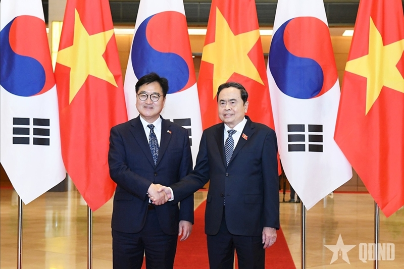 ໃນບັນຍາກາດທີ່ເຕັມໄປດ້ວຍໄມຕີຈິດມິດຕະພາບ, ທ່ານ ເຈິ່ນແທງເໝິນ ປະທານສະພາແຫ່ງຊາດຫວຽດນາມ ແລະ ທ່ານ Woo Won Shik ປະທານສະພາແຫ່ງຊາດ ສ.ເກົາຫຼີ ໄດ້ຕີລາຄາສູງການທູດລັດຖະສະພາ ແລະການຮ່ວມມືລະຫວ່າງສະພາແຫ່ງຊາດສອງປະເທດ ໄດ້ກາຍເປັນຈຸດພົ້ນເດັ່ນ, ສວມບົດບາດສຳຄັນໃນການຕິດຕາມກວດກາຊຸກຍູ້ການປະຕິບັດບັນດາຂໍ້ຕົກລົງຂັ້ນສູງ, ແບ່ງປັນປະສົບການດ້ານນິຕິບັນຍັດ ແລະເພີ່ມທະວີຄວາມເຂົ້າໃຈເຊິ່ງກັນ ແລະກັນລະຫວ່າງສອງປະເທດ. ການນໍາສອງປະເທດ ໄດ້ເຫັນດີສືບຕໍ່ປັບປຸງຄວາມໄວ້ເນື້ອເຊື່ອໃຈດ້ານການເມືອງ, ຮັກສາການແລກປ່ຽນຄະນະຜູ້ແທນຂັ້ນສູງຢ່າງເປັນປະຈຳ, ສ້າງພື້ນຖານແກ່ການເປີດກວ້າງການຮ່ວມມືຮອບດ້ານໃນທຸກຂົງເຂດ; ຊຸກຍູ້ການເປີດກວ້າງການຮ່ວມມືດ້ານປ້ອງກັນຊາດ, ປ້ອງກັນຄວາມສະຫງົບ; ແລກປ່ຽນປະສົບການ ແລະໜູນຊ່ວຍເຊິ່ງກັນ ແລະກັນໃນບັນຫາຄວາມໝັ້ນຄົງທີ່ບໍ່ເປັນການທະຫານ, ອາດຊະຍາກຳຂ້າມຊາດ.