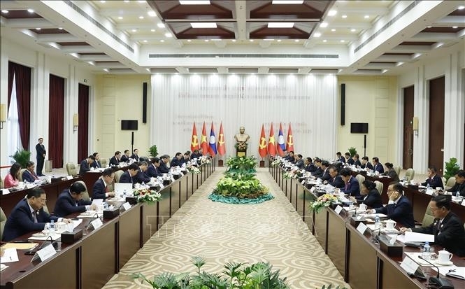 ກອງປະຊຸມພົບປະຂັ້ນສູງລະຫວ່າງພັກກອມມູນິດຫວຽດນາມ ແລະພັກປະຊາຊົນປະຕິວັດລາວ. ພາບ: ສໍານັກຂ່າວສານຫວຽດນາມ. |