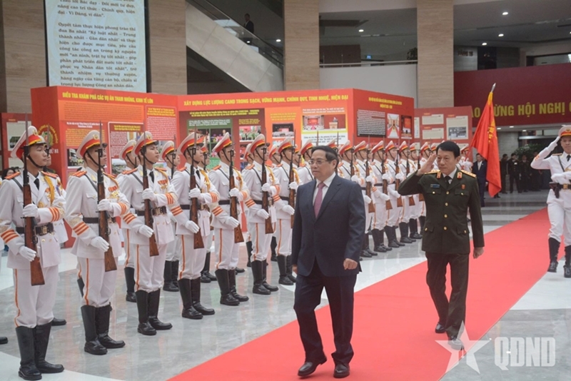 ທ່ານ ຟ້າມມິງຈິງ ນາຍົກລັດຖະມົນຕີຫວຽດນາມ ກວດແຖວກຽດຕິຍົດຕໍາຫຼວດປະຊາຊົນ. ພາບ: qdnd.vn |