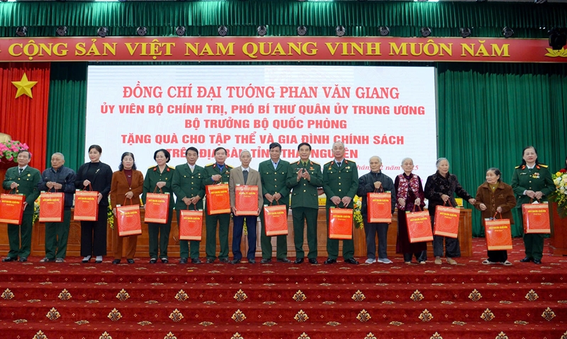 ເນື່ອງໃນໂອກາດນີ້, ຕາງໜ້າໃຫ້ຄະນະພັກການທະຫານສູນກາງ, ກະຊວງປ້ອງກັນປະເທດ, ທ່ານພົນເອກ ຟານວັນຢາງ ໄດ້ມອບຂອງຂວັນຈໍານວນ 9 ພູດໃຫ້ກົມກອງລວມໝູ່ ແລະ 200 ພູດໃຫ້ບັນດາຄອບຄົວນະໂຍບາຍ, ຄອບຄົວທີ່ປະສົບຄວາມຫຍຸ້ງຍາກຢູ່ແຂວງໄທງວຽນ.