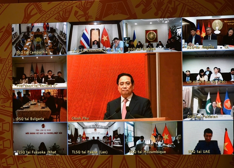 ວາລະກອງປະຊຸມຄົບຄະນະ ໄດ້ຈັດຂຶ້ນໃນຕອນບ່າຍວັນທີ 25 ທັນວາ ຢູ່ທີ່ສຳນັກງານນາຍົກລັດຖະມົນຕີ ໂດຍການເປັນປະທານຂອງທ່ານນາຍົກລັດຖະມົນຕີ ຟ້າມມິງຈີ້ງ, ກຳມະການກົມການເມືອງ, ເລຂາຄະນະພັກລັດຖະບານ, ດ້ວຍການເຂົ້າຮ່ວມຂອງທ່ານ ເລຮວ່າຍຈຸງ ເລຂາທິການສູນກາງພັກ, ລັດຖະມົນຕີກະຊວງການຕ່າງປະເທດ ພ້ອມດ້ວຍຜູ້ແທນກວ່າ 400 ຄົນເຂົ້າຮ່ວມແບບເຊິ່ງໜ້າເຊິ່ງແມ່ນການນໍາ, ຜູ້ຕາງໜ້າບັນດາຄະນະ, ກະຊວງ, ຂະແໜງການ, ທ້ອງຖິ່ນ, ອົງການຈັດຕັ້ງປະຊາຊົນ ແລະອົງການຈັດຕັ້ງທາງການເມືອງ-ສັງຄົມ ແລະຜູ້ແທນຊາວຫວຽດນາມ ອາໄສຢູ່ຕ່າງປະເທດທີ່ດີເດັ່ນກັບຄືນເມືອປະເທດ ເພື່ອເຂົ້າຮ່ວມກອງປະຊຸມ, ເຊື່ອມຕໍ່ທາງໄກກັບ 98 ອົງການຕາງໜ້າຫວຽດນາມ ຢູ່ຕ່າງປະເທດ.