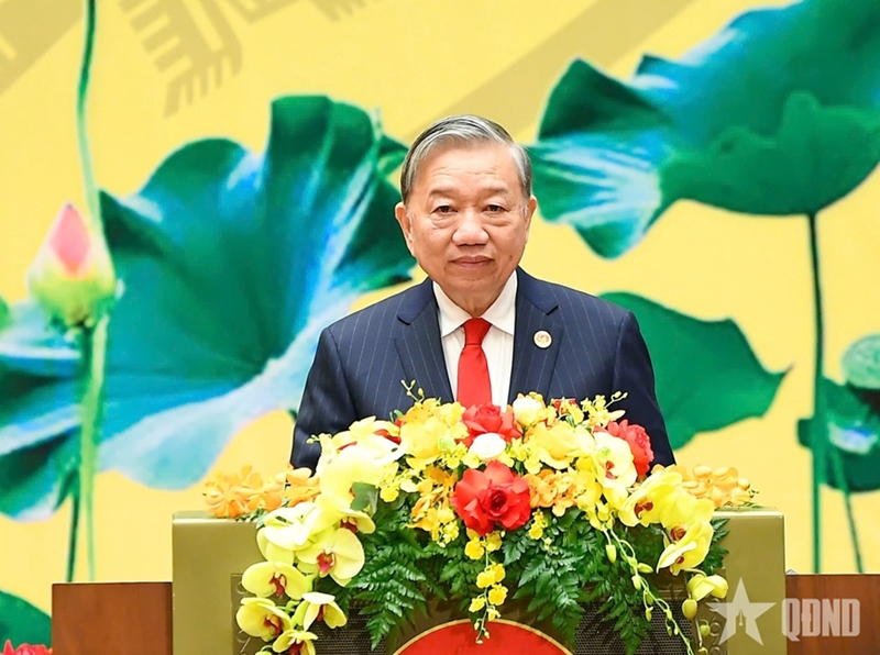 ທ່ານເລຂາທິການໃຫຍ່ ໂຕເລິມ ກ່າວຄໍາເຫັນຊີ້ນໍາທີ່ພິທີສະເຫຼີມສະຫຼອງ. ພາບ: qdnd.vn |