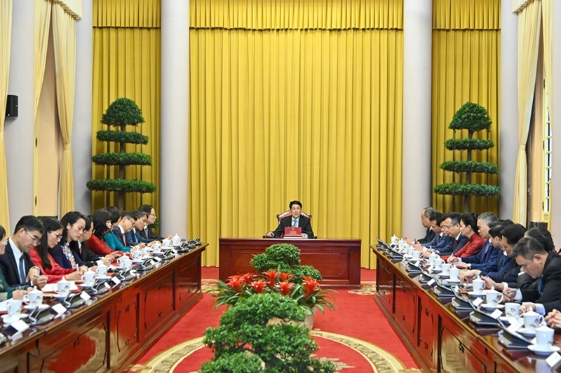 ທ່ານປະທານປະເທດ ເລືອງເກື່ອງ ກ່າວຄຳເຫັນມອບໜ້າທີ່ໃຫ້ບັນດາເອກອັກຄະລັດຖະທູດ. ພາບ: qdnd.vn |