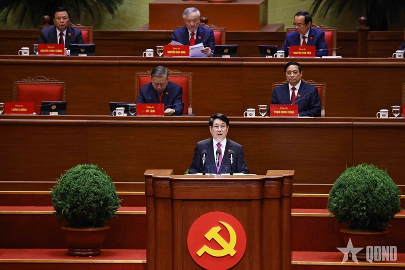 ສະຫາຍເລຂາທິການໃຫຍ່ ໂຕເລິມ ຕາງໜ້າຄະນະປະທານ ສະເໜີບົດລາຍງານກ່ຽວກັບບັນດາເອກະສານທີ່ຍື່ນສະເໜີຕໍ່ກອງປະຊຸມໃຫຍ່. ພາບ: qdnd.vn |