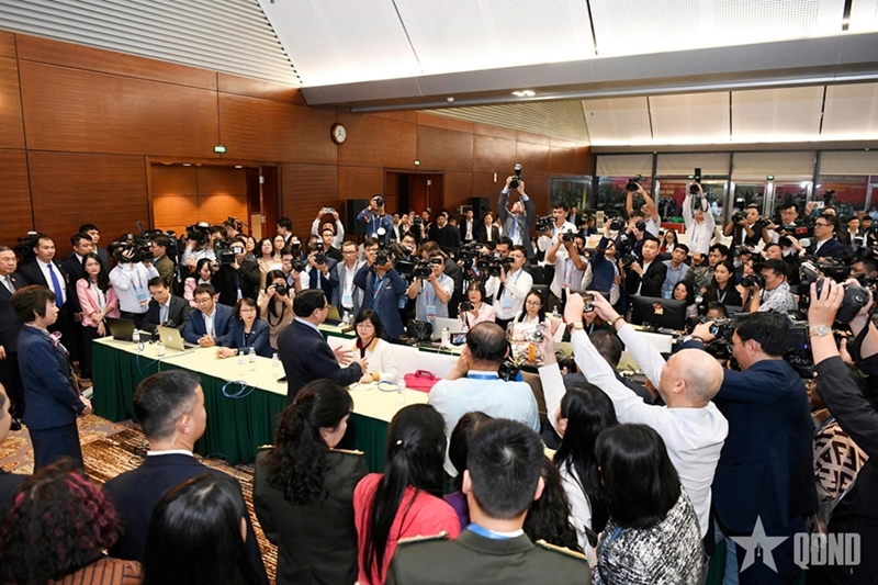 ທີ່ສູນສື່ມວນຊົນ, ທ່ານ ຟ້າມມິງຈິ໊ງ ໄດ້ຢ້ຽມຢາມຖາມຂ່າວບັນດານັກຂ່າວກ່ຽວກັບເງື່ອນໄຂເຮັດວຽກ ແລະດໍາເນີນຊີວິດໃນໄລຍະດໍາເນີນກອງປະຊຸມໃຫຍ່. ແບ່ງປັນກັບຄວາມຫຍຸ້ງຍາກລໍາບາກຂອງຖັນແຖວນັກຂ່າວ, ທ່ານນາຍົກລັດຖະມົນຕີ ເນັ້ນໜັກວ່າ ສື່ມວນຊົນ ຍາມໃດກໍແມ່ນກຳລັງລໍາບາກ ສະນັ້ນ, ຕ້ອງໃຫ້ບຸລິມະສິດແກ່ການເຄື່ອນໄຫວເກັບກໍາຂ່າວ, ສະໜອງໂຄງລ່າງຢ່າງພຽງພໍໃຫ້ແກ່ສື່ມວນຊົນ ເຄື່ອນໄຫວ, ໃນນັ້ນມີສາຍສົ່ງອິນເຕີແນັດ ແລະເງື່ອນໄຂເຮັດຂ່າວ, ຮັບປະກັນໃຫ້ສື່ມວນຊົນ ເຄື່ອນໄຫວຢ່າງສະດວກທີ່ສຸດ ເພື່ອແນໃສ່ໃຫ້ຂ່າວກ່ຽວກັບກອງປະຊຸມໃຫຍ່ຢ່າງພຽງພໍ.