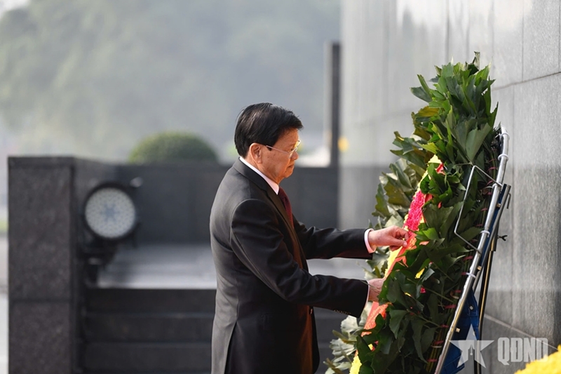 * ຕອນເຊົ້າວັນທີ 27 ມັງກອນ, ສະຫາຍເລຂາທິການໃຫຍ່, ປະທານປະເທດລາວ ທອງລຸນ ສີສຸລິດ ພ້ອມດ້ວຍພັນລະຍາ ແລະຄະນະຜູ້ແທນຂັ້ນສູງພັກ, ລັດລາວ ໄດ້ເຂົ້າວາງພວງມາລາ, ເຂົ້າສຸສານໄວ້ອາໄລປະທານໂຮ່ຈີມິນ; ວາງພວງມາລາອາໄລຫານັກຮົບວິລະຊົນທີ່ເສຍສະຫຼະຊີວິດ ເພື່ອຊາດຢູ່ອະນຸສາວະລີ ບັ໊ກເຊີນ (ຮ່າໂນ້ຍ).