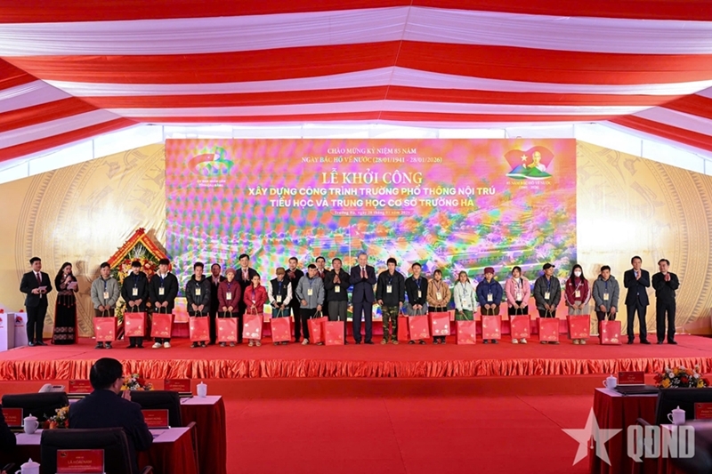 ດ້ວຍບັນຍາກາດ ແລະຈິດໃຈໃໝ່, ຈິດໃຈສາມັກຄີ ແລະຄວາມຮັບຜິດຊອບຂອງອົງຄະນະພັກ, ອໍານາດການປົກຄອງ ແລະປະຊາຊົນແຂວງກາວບັ່ງ, ທ່ານເລຂາທິການໃຫຍ່ ເຊື່ອໝັ້ນວ່າ ໂຮງຮຽນກິນນອນປະຖົມ ແລະມັດທະຍົມຕອນຕົ້ນ ເຈື່ອງຮ່າ ຈະກໍ່ສ້າງສໍາເລັດໂດຍໄວ, ນໍາເຂົ້າໃຊ້ງານຢ່າງມີປະສິດທິຜົນ, ກາຍເປັນຈຸດພົ້້ນເດັ່ນກ່ຽວກັບການສຶກສາ ຢູ່ເຂດຊາຍແດນ. ໃນຂອບເຂດການດຳເນີນພິທີ, ທ່ານເລຂາທິການໃຫຍ່ ໄດ້ມອບຂອງຂວັນໃຫ້ບັນດາຄອບຄົວເປົ້າໝາຍນະໂຍບາຍ, ຜູ້ມີຄຸນງາມຄວາມດີຕໍ່ການປະຕິວັດ ແລະບັນດາຄອບຄົວທີ່ປະສົບຄວາມຫຍຸ້ງຍາກ ຢູ່ຕາແສງ ເຈື່ອງຮ່າ.