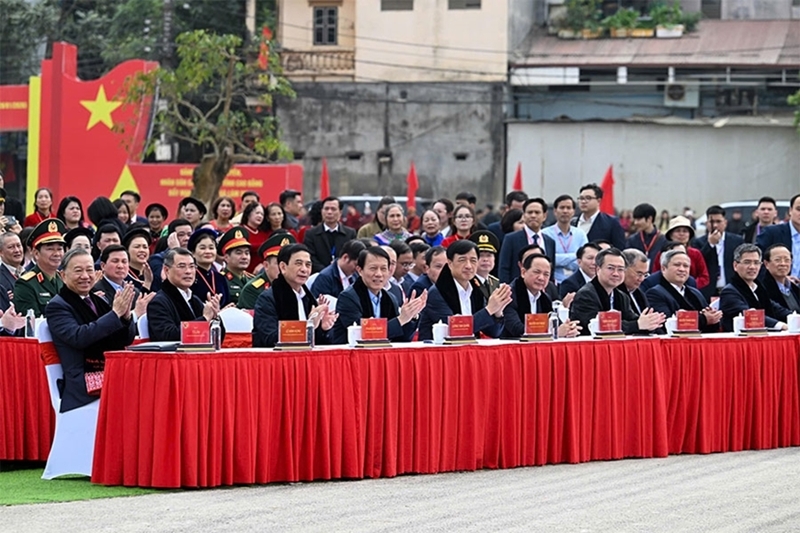 ທ່ານ ໂຕເລິມ ເລຂາທິການໃຫຍ່ ພ້ອມກັບບັນດາສະຫາຍການນໍາພັກ, ລັດ ແລະຜູ້ຕາງໜ້າແຂວງກາວບັ່ງ. ພາບ: qdnd.vn |