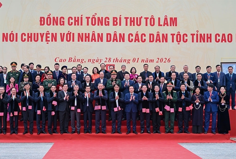 ພົບປະ ແລະໂອ້ລົມກັບປະຊາຊົນບັນດາເຜົ່າແຂວງກາວບັ່ງ ໃນຕອນບ່າຍຂອງວັນທີ 28 ມັງກອນ, ທີ່ສະໜາມກິລາຕາແສງ ຖູກຝ໋ານ, ທ່ານເລຂາທິການໃຫຍ່ ສະແດງຄວາມສະເທືອນໃຈອັນເລິກເຊິ່ງ ເມື່ອໄດ້ພົບປະ, ໂອ້ລົມກັບປະຊາຊົນ ແລະພວກນ້ອງນັກຮຽນ. ທ່ານ ໂຕເລິມ ໄດ້ເວົ້າເຖິງ ວັນທີ 28 ມັງກອນ 1941 ເຊິ່ງ ເປັນວັນທີ່ ຜູ້ນໍາ ຫງວຽນອ໊າຍກວກ ກັບຄືນປະເທດ ພາຍຫຼັງ 30 ປີ ທີ່ອອກໄປຊອກຫາເສັ້ນທາງກູ້ຊາດ, ທ່ານເລຂາທິການໃຫຍ່ ຢັ້ງຢືນວ່າ ກາວບັ່ງ ເປັນບ່ອນທີ່ໄດ້ເຫັນກັບຕາ ແລະຮ່ວມເດີນທາງໄປກັບການເລືອກເຟັ້ນປະຫວັດສາດ. ຈາກດິນແດນແຫ່ງນີ້, ເພິ່ນ ໄດ້ອີງໃສ່ປະຊາຊົນ, ສ້າງຖານທີ່ໝັ້ນປະຕິວັດ, ເພື່ອເຮັດໃຫ້ແສງສະຫວ່າງຂອງແນວຄິດ ໂຮ່ຈີມິນ ແຜ່ກະຈາຍ, ນໍາພາຊົນຊາດຫວຽດນາມ ກ້າວໄປເຖິງເອກະລາດ, ເອກະພາບ ແລະ ພັດທະນາ.