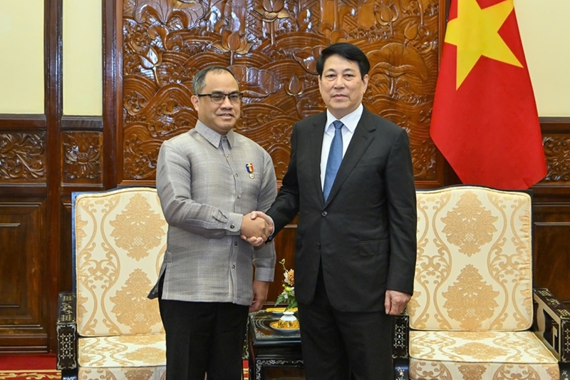 ທ່ານ ເລືອງເກື່ອງ ປະທານປະເທດ ຕ້ອນຮັບທ່ານ Francisco Noel R. Fernandez III ເອກອັກຄະລັດຖະທູດ ຟີລິບປິນ ປະຈຳ ຫວຽດນາມ. ພາບ: qdnd.vn |