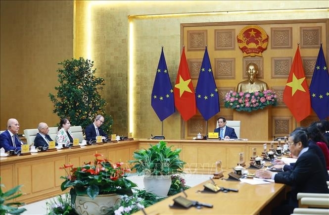 ທ່ານນາຍົກລັດຖະມົນຕີ ຟ້າມມິງຈິ໊ງ ຢືນຢັນວ່າ ອີຢູ ແລະບັນດາປະເທດສະມາຊິກເປັນຄູ່ຮ່ວມມືສໍາຄັນແຖວໜ້າໃນນະໂຍບາຍການພົວພັນຕ່າງປະເທດຂອງຫວຽດນາມ. ເລື່ອງຜັນຂະຫຍາຍສັນຍາການຄ້າເສລີຫວຽດນາມ-ອີຢູ (EVFTA) ໃຫ້ມີປະສິດທິຜົນ ໄດ້ປະກອບສ່ວນນໍາ ອີຢູ ໃຫ້ກາຍເປັນຄູ່ຮ່ວມມືການຄ້າໃຫຍ່ອັນດັບ 4 ຂອງຫວຽດນາມ, ໃນຂະນະທີ່ຫວຽດນາມ ເປັນຄູ່ຮ່ວມມືໃຫຍ່ທີ່ສຸດຂອງອີຢູ ໃນອາຊຽນ. ການຮ່ວມມືໃນຂົງເຂດປ້ອງກັນຊາດ, ປ້ອງກັນຄວາມສະຫງົບ, ການປ່ຽນແປງຂອງດິນຟ້າອາກາດ, ກະສິກໍາ, ຕຸລາການ, ວິທະຍາສາດ-ເຕັກໂນໂລຢີ, ສິ່ງແວດລ້ອມ... ພວມໄດ້ຮັບການເປີດກວ້າງດ້ວຍຄວາມສາມາດບ່ົມຊ້ອນຫຼາຍຢ່າງ.
