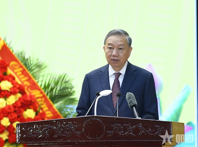 ທ່ານ ໂຕເລິມ ເລຂາທິການໃຫຍ່, ປະທານປະເທດ, ເລຂາຄະນະພັກການທະຫານສູນກາງ ກ່າວຄໍາເຫັນຊີ້ນໍາທີ່ພິທີ. ພາບ: qdnd.vn |