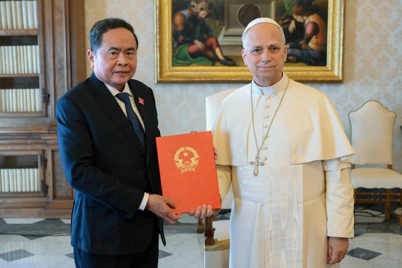 ຕາມນັ້ນແລ້ວ, ທ່ານປະທານສະພາແຫ່ງຊາດ ເຈິ່ນແທັງເໝິນ ປາດຖະໜາວ່າ ສັນທະປະປາ Leo XIV ແລະວັງວາຕິກັນ ຈະສືບຕໍ່ເອົາໃຈໃສ່, ປັບປຸງຄວາມໄວ້ເນື້ອເຊື່ອໃຈ ແລະຄວາມເຂົ້າໃຈເຊິ່ງກັນ ແລະກັນໃຫ້ຫຼາຍຕື່ມອີກ, ມຸ່ງໄປເຖິງການຍົກລະດັບສາຍພົວພັນລະຫວ່າງຫວຽດນາມ ແລະ ວັງວາຕິກັນ ຂຶ້ນສູ່ໄລຍະພັດທະນາໃໝ່, ເພື່ອຜົນປະໂຫຍດຂອງປະຊາຊົນ ແລະເພື່ອສັນຕິພາບ, ວັດທະນາຖາວອນລວມຂອງມວນມະນຸດ.