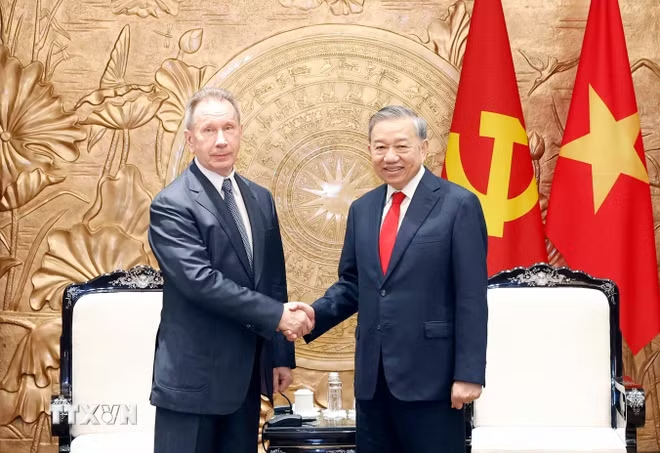 ທ່ານ ໂຕເລິມ ເລຂາທິການໃຫຍ່, ປະທານປະເທດຫວຽດນາມ ຕ້ອນຮັບທ່ານ Viktor Zolotov ຜູ້ອໍານວຍການອົງການພິທັກແຫ່ງຊາດ ສະຫະພັນລັດເຊຍ. ພາບ: ສໍານັກຂ່າວສານຫວຽດນາມ. |