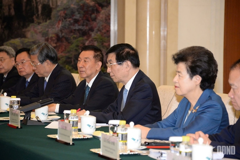 ທ່ານ ວາງ ຮູ້ ນິງ ປະທານສະພາປຶກສາການເມືອງປະຊາຊົນແຫ່ງຊາດ ຈີນ ແລະບັນດາຜູ້ແທນທີ່ການພົບປະ. ພາບ: qdnd.vn |