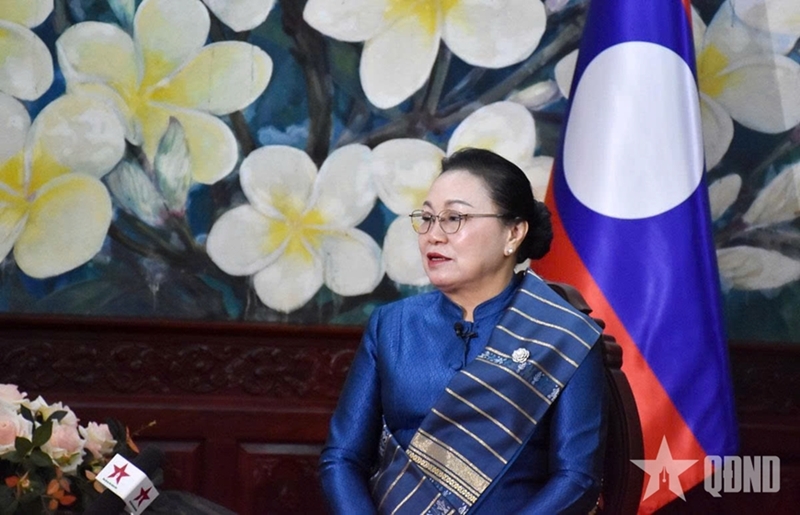 ທ່ານນາງ ຄຳເພົາ ເອີນທະວັນ ເອກອັກຄະລັດຖະທູດລາວ ປະຈຳ ຫວຽດນາມ ໃຫ້ສຳພາດນັກຂ່າວໜັງສືພິມກອງທັບປະຊາຊົນຫວຽດນາມ. ພາບ: qdnd.vn |