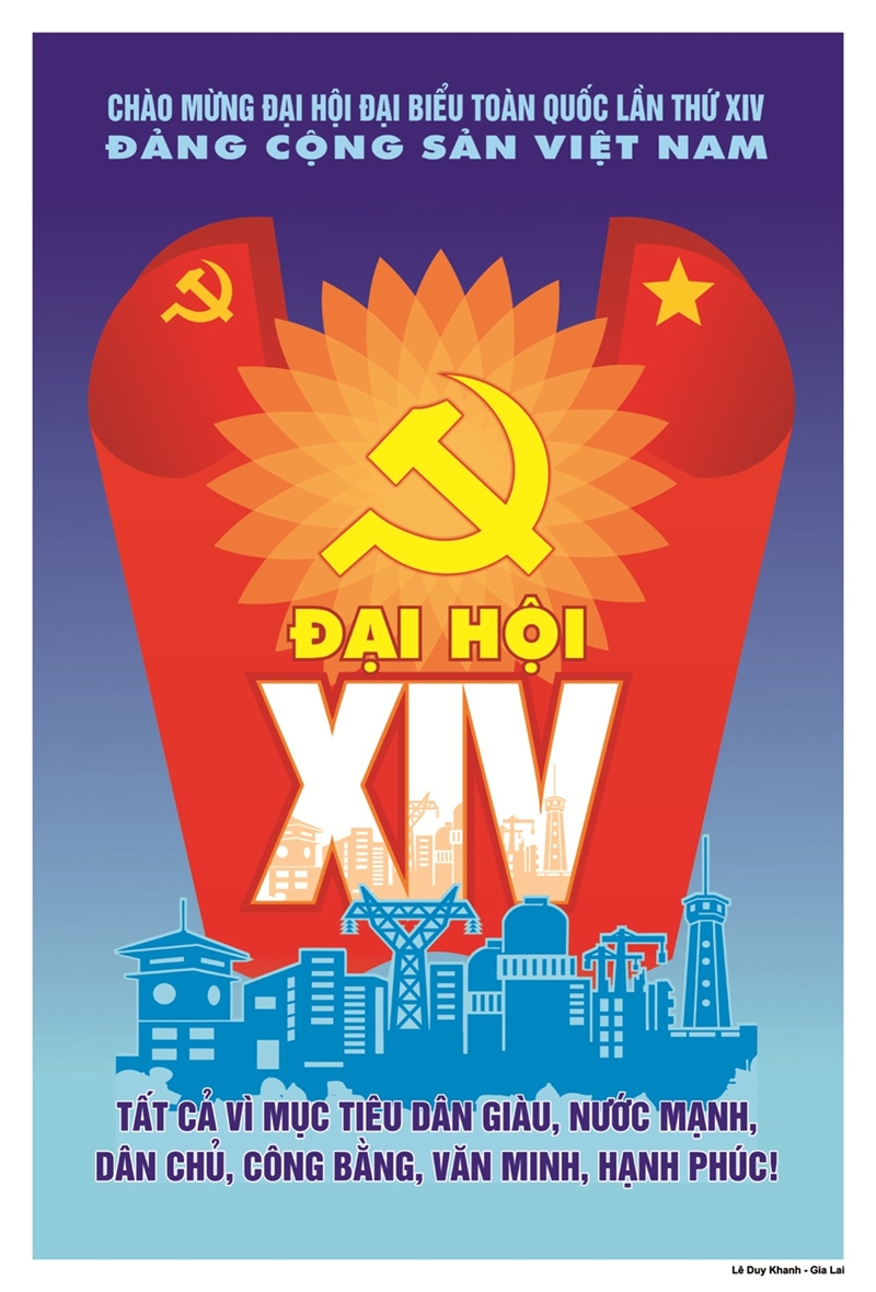 ພາບແຕ້ມໂຄສະນາຂ່ຳນັບຮັບຕ້ອນກອງປະຊຸມໃຫຍ່ຜູ້ແທນທົ່ວປະເທດ ຄັ້ງທີ XIV ຂອງພັກກອມມູນິດຫວຽດນາມ. ພາບ: ເລຢຸຍແຄັງ |