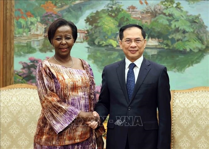 ທ່ານ ບຸ່ຍແທັງເຊີນ ຮອງນາຍົກລັດຖະມົນຕີ ຕ້ອນຮັບທ່ານນາງ Louise Mushikiwabo ເລຂາທິການໃຫຍ່ອົງການຝຣັ່ງໂກໂຟນີສາກົນ. ພາບ: ສໍານັກຂ່າວສານຫວຽດນາມ |