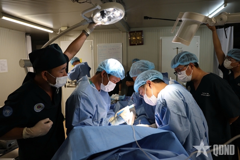 ກປ.ອອນໄລ - ພາຍຫຼັງ 1 ອາທິດ ໄດ້ເຂົ້າຮັບໜ້າທີ່ຢ່າງເປັນທາງການເພື່ອປ່ຽນແທນໂຮງໝໍສະໜາມຂັ້ນ 2 ເລກ 6 ຢູ່ຄະນະປະຕິບັດງານຮັກສາສັນຕິພາບ ສປຊ ຢູ່ຊູດັງໃຕ້ (UNMISS), ໝູ່ຄະນະພະນັກງານແພດໝໍຂອງໂຮງໝໍສະໜາມຂັ້ນ 2 ເລກ 7 ຂອງຫວຽດນາມ ໄດ້ປະຕິບັດການຜ່າຕັດໄສ້ຕິ່ງອັກເສບສຸກເສີນທຳອິດໃນບໍລິເວນປະສົບຜົນສໍາເລັດ.