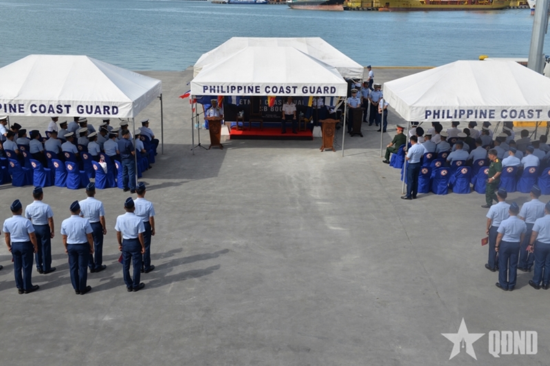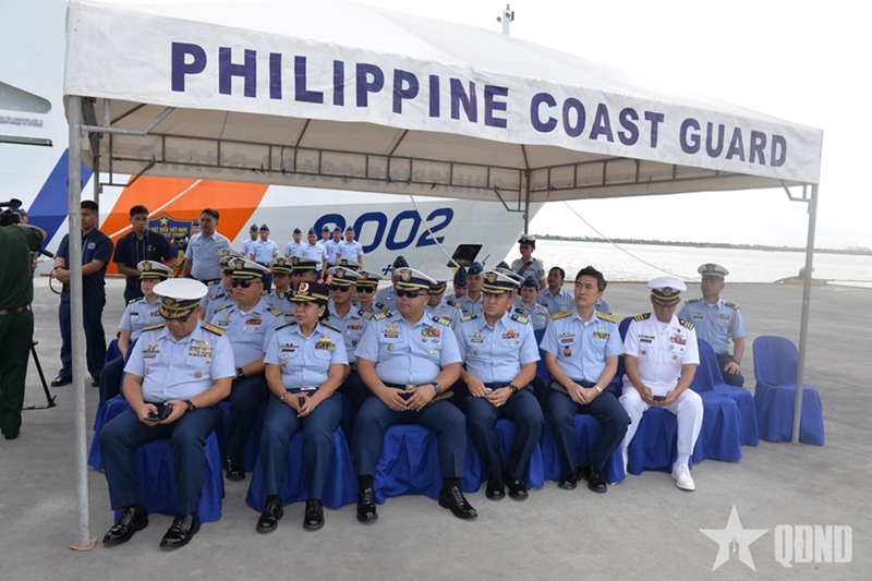 ທ່ານພົນຈັດຕະວາ Agapito B Bibat ຜູ້ບັນຊາການເຂດໃຈກາງ Visayas, ກໍາລັງປ້ອງກັນຝັ່ງທະເລຟີລິປິນ ເປັນປະທານພິທີຕ້ອນຮັບຄະນະຜູ້ແທນຕໍາຫຼວດທະເລຫວຽດນາມ ແລະ ກຳປັ່ນຕໍາຫຼວດທະເລ 8002.