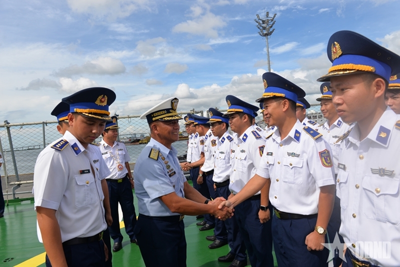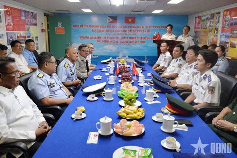 ກປ.ອອຍໄລ - ພາຍຫຼັງການເດີນທະເລຍາວ 1.200 ໄມທະເລ, ວັນທີ 6 ຕຸລາ ຄະນະຜູ້ແທນຕໍາຫຼວດທະເລຫວຽດນາມ ນໍາໂດຍ ທ່ານພົນຈັດຕະວາ ເຈິ່ນກວາງຕ໋ວນ, ຜູ້ບັນຊາການຕໍາຫຼວດທະເລເຂດ 2 ໄປນໍາກຳປັ່ນຕໍາຫຼວດທະເລ 8002 ໄດ້ເຂົ້າທຽບທ່າເຮືອ Cebu Pier 5 (ນະຄອນ Cebu, ຟີລິບປິນ), ເລີ່ມຕົ້ນການຢ້ຽມຢາມ, ພົບປະແລກປ່ຽນ ແລະແບ່ງປັນບົດຮຽນກັບກໍາລັງປ້ອງກັນຝັ່ງທະເລ ຟີລິບປິນ.