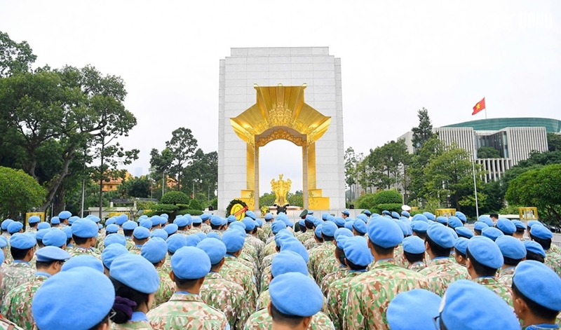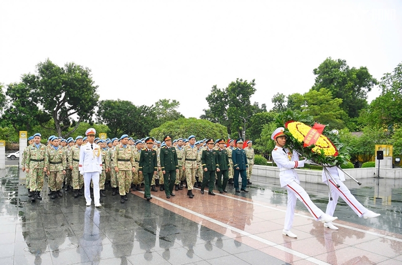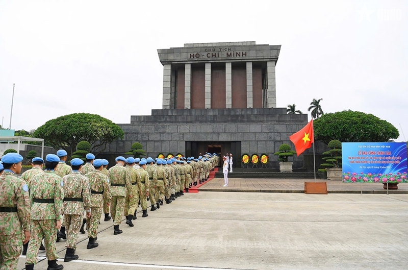 ກປ.ອອນໄລ - ຕອນເຊົ້າວັນທີ 23 ຕຸລາ, ກົມຮັກສາສັນຕິພາບຫວຽດນາມ ໄດ້ຈັດພິທີຖະຫວາຍທູບທຽນຢູ່ອະນຸສາວະລີບັນດາວິລະຊົນນັກຮົບເສຍສະຫຼະຊີວິດເພື່ອຊາດ (ຖະໜົນ ບັກເຊີນ, ຮ່າໂນ້ຍ) ແລະ ແຈ້ງຜົນງານຕໍ່ລຸງໂຮ່, ພາຍຫຼັງກອງຊ່າງແສງເລກ 3 ແລະ ໂຮງໝໍກາງສະໜາມຂັ້ນ 2 ເລກ 6 ປະຕິບັດສຳເລັດໜ້າທີ່ຮັກສາສັນຕິພາບ ສປຊ ກັບຄືນປະເທດ.