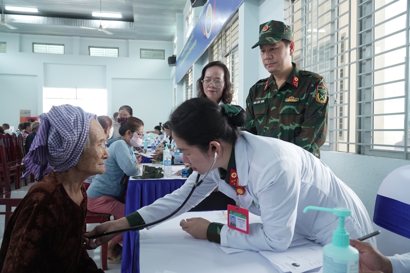 ກ່ອນໜ້ານີ້, ໃນວັນທີ 5 ພະຈິກ, ແພດທະຫານສອງປະເທດ ດໍາເນີນການກວດພະຍາດ, ແຈກຢາໂດຍບໍ່ເສຍຄ່າຢູ່ຕາແສງ Kokisom, ເມືອງ Svay Tiep, ແຂວງ Svay Rieng (ກໍາປູເຈຍ). ລາຍການດັ່ງກ່າວເພື່ອແນໃສ່ຊ່ວຍໃຫ້ປະຊາຊົນຢູ່ເຂດຊາຍແດນໄດ້ຮັບການສົ່ງເສີມສຸຂະພາບ ແລະເຂົ້າເຖິງການບໍລິການການແພດທີ່ມີຄຸນນະພາບ; ພ້ອມທັງເປັນໂອກາດເພື່ອໃຫ້ກອງທັບສອງປະເທດ ຫວຽດນາມ-ກຳປູເຈຍ ພົບປະແລກປ່ຽນ, ແບ່ງປັນ ແລະຮໍ່າຮຽນເຊິ່ງກັນ ແລະກັນຈາກປະສົບການດ້ານວິຊາການວິຊາສະເພາະ, ຮັດແໜ້ນຄວາມສາມັກຄີ, ຄວາມສະໜິດຕິດພັນ.