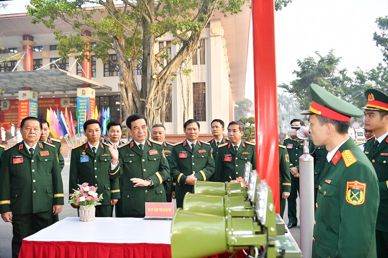 ທ່ານພົນເອກ ຟານວັນຢາງ ແລະການນໍາກະຊວງປ້ອງກັນປະເທດ ຢ້ຽມຊົມຂໍ້ລິເລີ່ມ, ການດັດແປງເຕັກນິກຂອງໄວໜຸ່ມກອງທັບທີ່ວາງສະແດງຮັບໃຊ້ກອງປະຊຸມໃຫຍ່. ພາບ: ຕວນຮຸຍ |