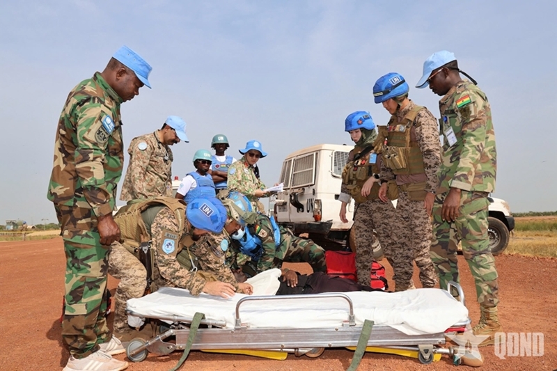 ກປ.ອອນໄລ - ໂຮງໝໍສະໜາມຂັ້ນ 2 ເລກ 7 ຂອງຫວຽດນາມ ຫາກໍ່ ໄດ້ເຂົ້າຮ່ວມການຝຶກຊ້ອມຮັບມືກັບກໍລະນີປິ່ນປົວຄົນເຈັບທີ່ໄດ້ຮັບຄວາມເສຍຫາຍເປັນຈຳນວນຫຼວງຫຼາຍ (MCI) ໂດຍອີງໃສ່ສະຖານະການທີ່ເປັນຈິງທີ່ໄດ້ຮັບການສ້າງໂດຍອົງການສາທາລະນະສຸກພາກພື້ນ ແລະຫົວໜ່ວຍບັນຊາສຸກເສີນຂອງຄະນະປະຕິບັດງານ ສະຫະປະຊາຊາດ ຢູ່ຊູດັງໃຕ້.