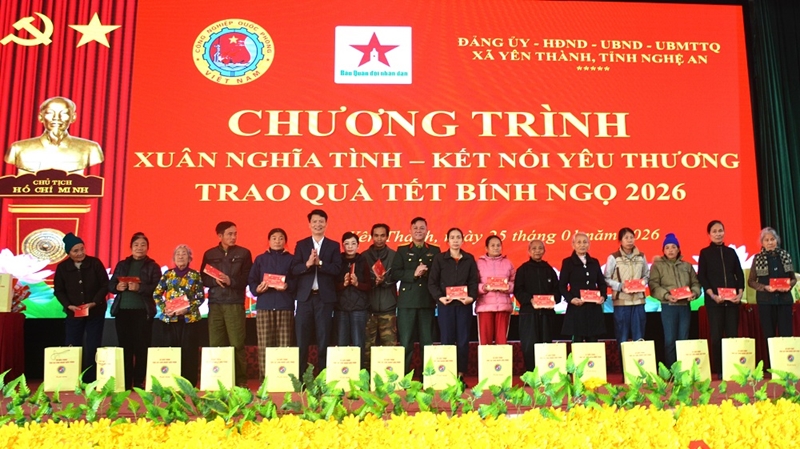 ກປ.ອອນໄລ - ວັນທີ 25 ມັງກອນ, ກົມໃຫຍ່ອຸດສາຫະກໍາປ້ອງກັນຊາດ ສົມທົບກັບໜັງສືພິມກອງທັບປະຊາຊົນ ຈັດຕັ້ງລາຍການ “ລະດູບານໃໝ່ແຫ່ງຄວາມເມດຕາ - ເຊື່ອມຕໍ່ຄວາມຮັກແພງ” ມອບຂອງຂວັນປີໃໝ່ 2026 ໃຫ້ຄອບຄົວນະໂຍບາຍ, ປະສົບກັບຄວາມທຸກຍາກຢູ່ແຂວງເງະອານ.
