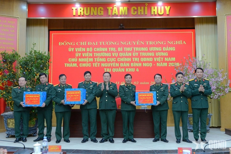 ສໍາລັບໜ້າທີ່ຕ້ອນຮັບບຸນປີໃໝ່ປະຈໍາຊາດປີມະເມຍ 2026, ທ່ານພົນເອກ ຫງວຽນຈ້ອງເຫງ້ຍ ຮຽກຮ້ອງໃຫ້ກໍາລັງປະກອບອາວຸດທະຫານເຂດ 4 ຍົກສູງຈິດໃຈກຽມພ້ອມສູ້ຮົບ; ຈັດຕັ້ງວຽກງານພັກ, ວຽກງານການເມືອງເປັນຢ່າງດີ; ຮັບປະກັນພະລາທິການ, ການເງິນ, ເຕັກນິກຢ່າງຄົບຖ້ວນໃຫ້ແກ່ໜ້າທີ່ຕ່າງໆ; ພ້ອມທັງສະແດງຄວາມເຊື່ອໝັ້ນວ່າ ພະນັກງານ, ນັກຮົບກໍາລັງປະກອບອາວຸດທະຫານເຂດ 4 ຈະສືບຕໍ່ເສີມຂະຫຍາຍມູນເຊື້ອ, ສາມັກຄີ, ມານະພະຍາຍາມສູ້ຊົນ, ປະຕິບັດສໍາເລັດທຸກໜ້າທີ່ທີ່ໄດ້ຮັບມອບໝາຍໃນປີໃໝ່ຢ່າງດີເລີດ.