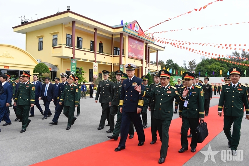ທ່ານພົນເອກ ຟານວັນຢາງ ແລະທ່ານ ພົນໂທ Dong Jun ພ້ອມດ້ວຍບັນດາຜູ້ແທນ. ພາບ: qdnd.vn |