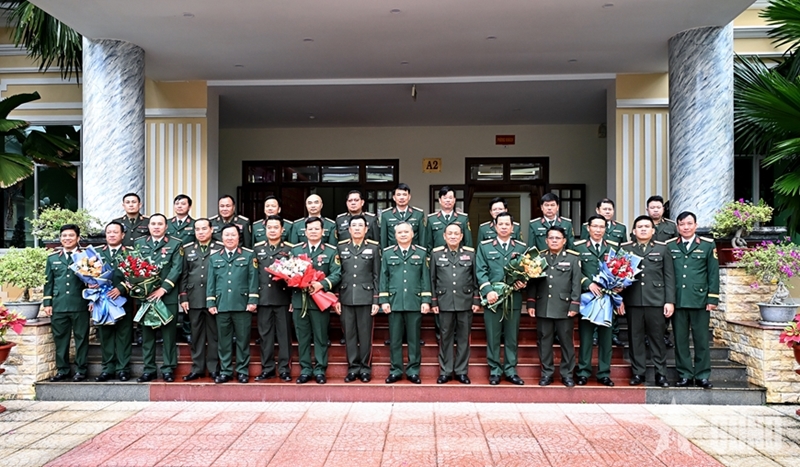 ທ່ານພົນຕີ ເດືອນສະຫວັນ ສາຍພິມຄຳປະທຸມ, ຮອງຫົວໜ້າກົມໃຫຍ່ການເມືອງ ກອງທັບປະຊາຊົນລາວ ປະດັບຫຼຽນໄຊພິລະອາດຫານໃຫ້ແກ່ພະນັກງານຂອງແມ່ທັບນ້ອຍ 15. ພາບ: qdnd.vn |