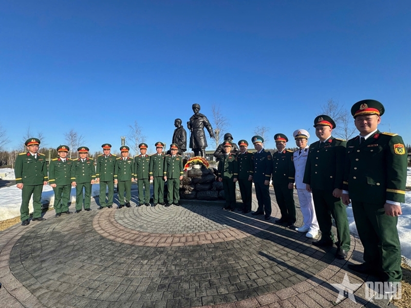 ໃນວັນດຽວກັນ, ທ່ານພົນໂທ ຟ້າມເຈື່ອງເຊີນ ໄດ້ໄປວາງພວງມາລາ ທີ່ອະນຸສາວະລີບັນດານັກຮົບອາສາສະໝັກສາກົນຫວຽດນາມ ເຂົ້າຮ່ວມການຕໍ່ສູ້ປ້ອງກັນນະຄອນຫຼວງມົດສະກູ ໃນສົງຄາມປ້ອງກັນປິຕິພູມທີ່ຍິ່ງໃຫຍ່; ຢ້ຽມຢາມຫ້ອງການທີ່ປຶກສາທູດປ້ອງກັນຊາດຫວຽດນາມ ປະຈໍາ ສະຫະພັນລັດເຊຍ ແລະພົບປະໂອ້ລົມກັບຜູ້ຕາງໜ້ານັກຮຽນທະຫານທີ່ພວມຮໍ່າຮຽນຢູ່ມົດສະກູ.