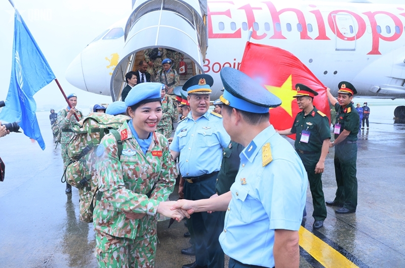 ກປ.ອອນໄລ - ວັນທີ 29 ກັນຍາ, ຢູ່ສະໜາມບິນສາກົນ ໂນ້ຍບ່າຍ, ກົມຮັກສາສັນຕິພາບຫວຽດນາມ ໄດ້ຈັດພິທີຕ້ອນຮັບພະນັກງານ, ພາລະກອນກອງຊ່າງແສງ ເລກ 3 ທີ່ປະຕິບັດສໍາເລັດໜ້າທີ່ ທີ່ຄະນະປະຕິບັດງານປ້ອງກັນຄວາມສະຫງົບຊົ່ວຄາວຂອງ ສປຊ ຢູ່ເຂດ Abyei (UNISFA) ກັບຄືນປະເທດ.