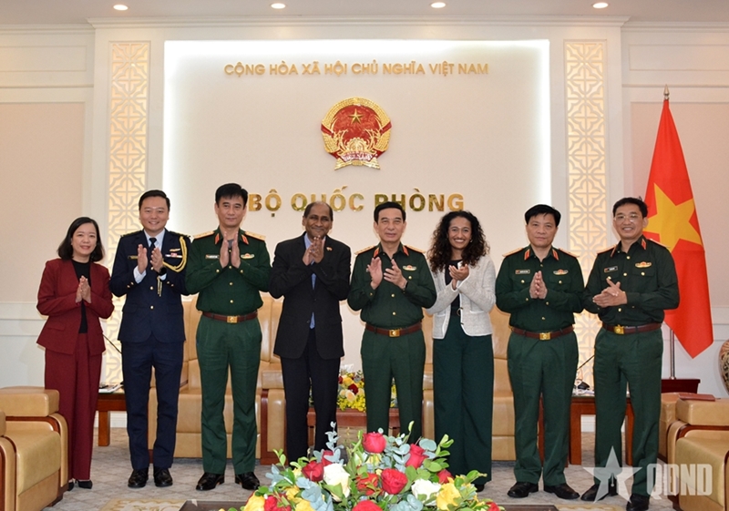 ທ່ານພົນເອກ ຟານວັນຢາງ ລັດຖະມົນຕີກະຊວງປ້ອງກັນປະເທດຫວຽດນາມ ແລະທ່ານ Jaya Ratnam ເອກອັກຄະລັດຖະທູດ ສິງກະໂປ ປະຈໍາຫວຽດນາມ ພ້ອມດ້ວຍບັນດາຜູ້ແທນ. ພາບ: qdnd.vn |