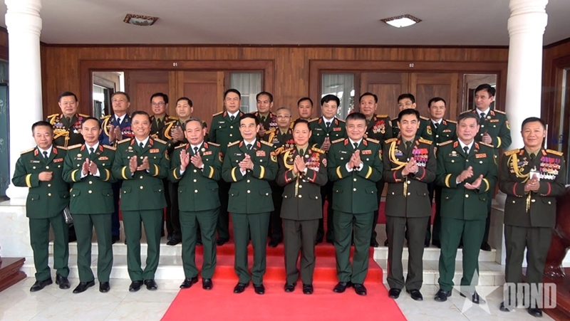 ທ່ານພົນເອກ ຟານວັນຢາງ, ທ່ານພົນໂທ ຄຳລຽງ ອຸທະໄກສອນ ແລະບັນດາຜູ້ແທນທີ່ການພົບປະ. ພາບ: qdnd.vn |