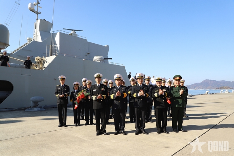 ຜູ້ຕາງໜ້າຖານທັບເຮືອ Kure ມອບດອກໄມ້ຊົມເຊີຍຄະນະປະຕິບັດງານ. ພາບ: qdnd.vn |